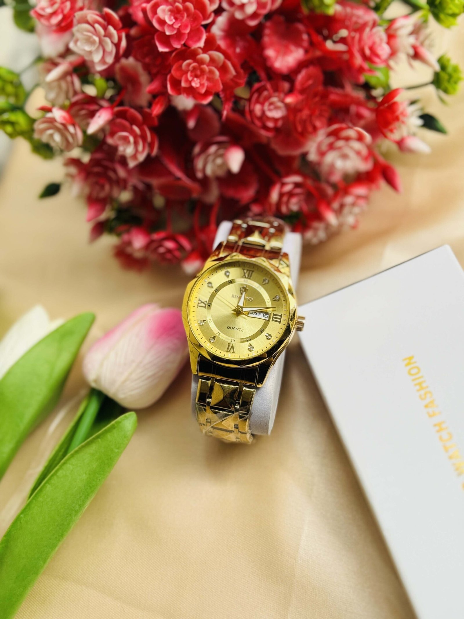 সিলভার ও গোল্ড টু-টোন মেটাল স্ট্র্যাপ ঘড়িটিকে করেছে আরও আকর্ষণীয় ও লাক্সারি ফিলযুক্ত। গোল্ডেন হ্যান্ডস ও রোমান নম্বর ডিজাইন ঘড়ির সৌন্দর্য বাড়িয়ে তুলেছে কয়েকগুণ।